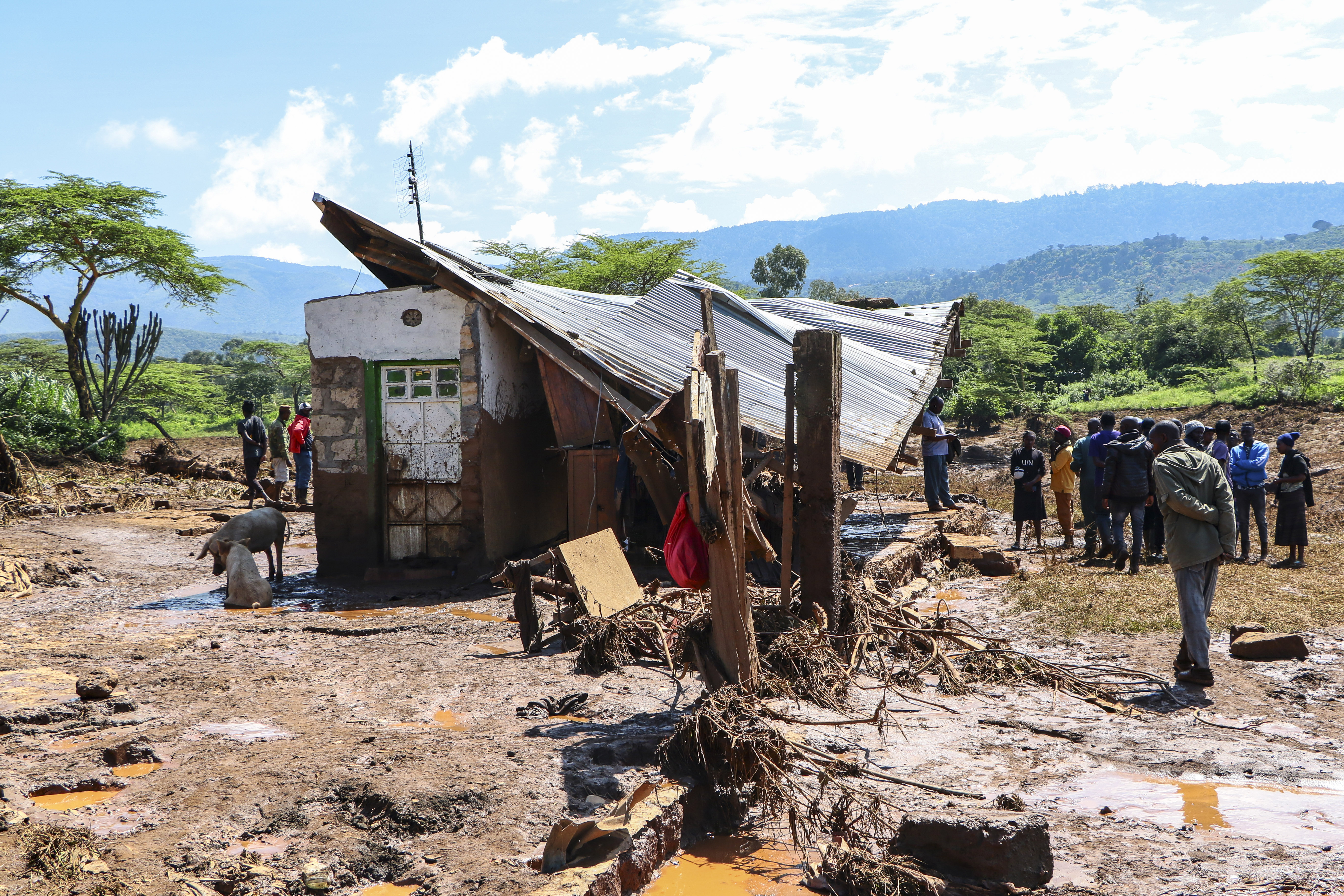 4月29日,在肯尼亚纳库鲁,东谈主们采集在一个被决堤巨流冲毁的房屋旁。新华社发(谢赫·马伊纳摄)