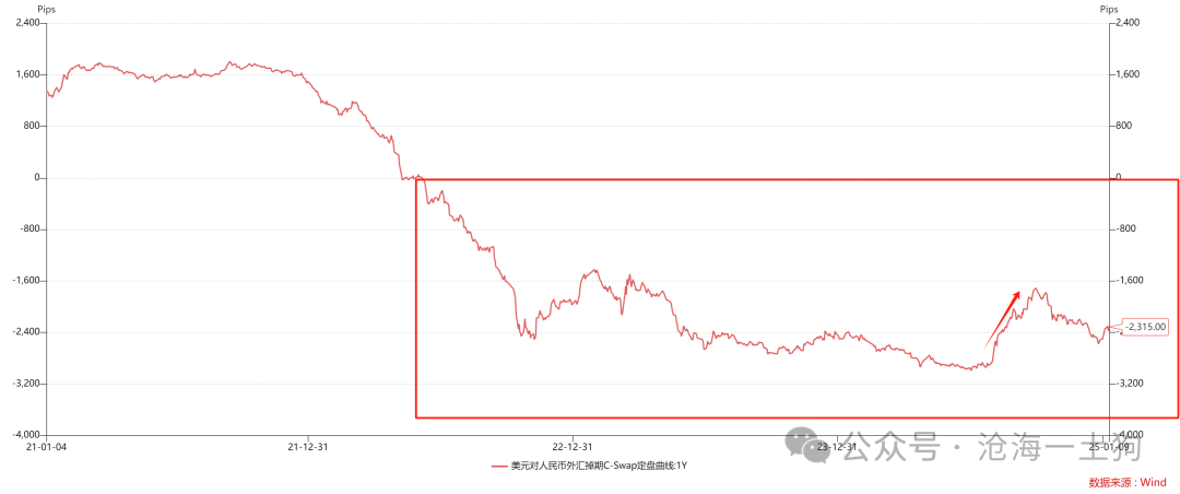 如上图所示,在平日情况下,特殊资金池的扩展会迫使机构在远期商场大皆卖空东说念主民币来篡改风险,一方面加多当局的掉期成本,一方面使得汇率承压。