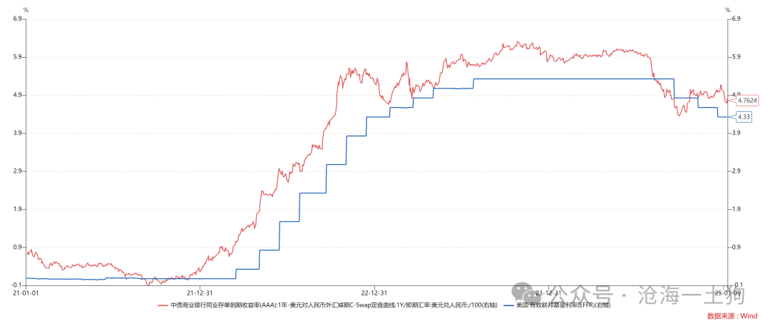 底下咱们不错用畴昔4年的数据考据一下,中好意思之间是否存在利率平价: