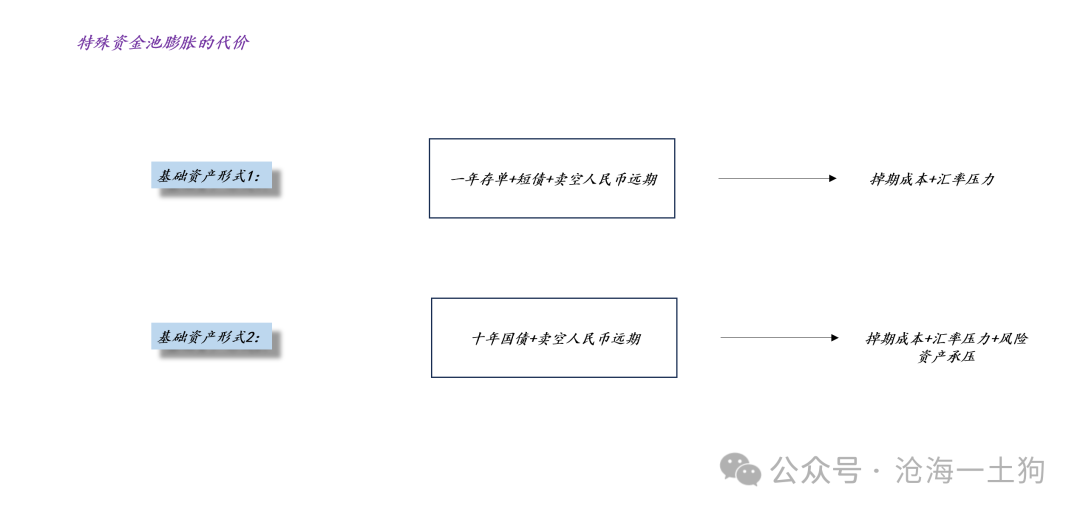 要是基础金钱为永恒国债,那么,长债的成本利得会去挤压风险金钱,于是,特殊资金池的扩展会产生一个特殊成本——风险金钱承压。